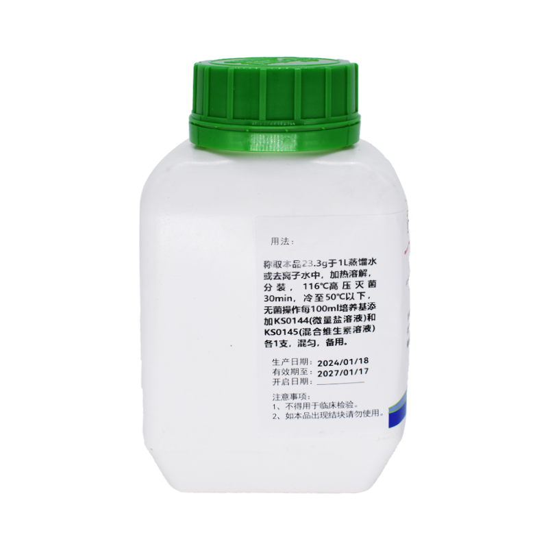 2、培養(yǎng)基應(yīng)置于避光、干燥處保存,使用后應(yīng)立即旋緊瓶蓋,以免吸潮結(jié)塊。