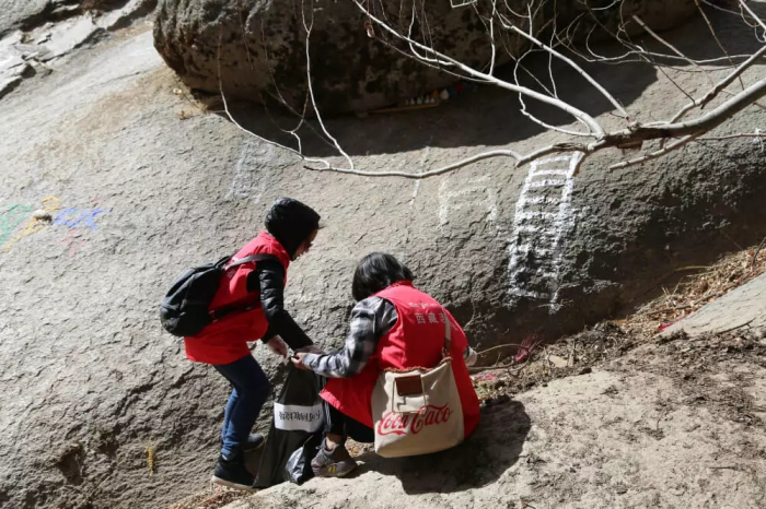 這時(shí)基金會(huì)的工作人員及時(shí)給大家發(fā)放了手套和垃圾袋。上山途中,同事們一邊享受著爬山帶來的樂趣,一邊把沿途的垃圾撿起放在事先準(zhǔn)備好的垃圾袋中,并將可回收垃圾和不可回收垃圾進(jìn)行分開收集。因?yàn)樯铰菲閸?,本次活?dòng)還準(zhǔn)備了急救箱,以防在爬山過程中出現(xiàn)身體不適等意外情況。
