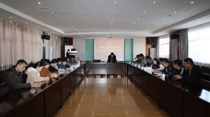 各負(fù)責(zé)人會上作說明·多杰太(左一) 、田鵬(右一)、羅布次仁(左二)、許鵬杰(右二)、李紀(jì)偉(左三)、李麗(右三)