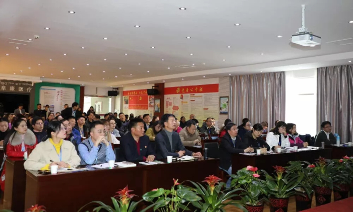 正式開講前,文進(jìn)副所長代表四川大學(xué)華西醫(yī)院醫(yī)院管理研究所向阜康醫(yī)療贈送了醫(yī)院管理專業(yè)書籍,西藏阜康醫(yī)療股份有限公司黨委書記、董事長王斌接受了饋贈。王斌隨后向與會老師、同學(xué)介紹了阜康醫(yī)療的創(chuàng)業(yè)歷程。從2005年開始,經(jīng)過全體員工13年的不懈奮斗,阜康由當(dāng)初只有70張床位的小醫(yī)院發(fā)展成為530張床位,工作人員1057人,集醫(yī)療、教學(xué)、科研、預(yù)防、保健、康復(fù)、急救和社區(qū)衛(wèi)生服務(wù)于一體的西藏民營醫(yī)療機(jī)構(gòu),在醫(yī)學(xué)領(lǐng)域開創(chuàng)諸多全區(qū)之先河,為西藏的醫(yī)療事業(yè)發(fā)展、保障各族群眾的身體健康作出了巨大貢獻(xiàn)。