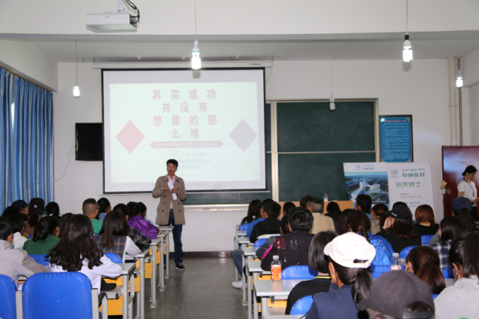 王斌以"其實(shí)成功并沒有想象的那么難”為主題,和藏大醫(yī)學(xué)院應(yīng)屆畢業(yè)生共同探討了如何工作與自主創(chuàng)業(yè),闡述了自己在拉薩21年來的創(chuàng)業(yè)經(jīng)歷,為在座大學(xué)生分享了"用別人的平臺入世、找到志同道合的合伙人、選準(zhǔn)行業(yè)項(xiàng)目堅(jiān)持到底”的創(chuàng)業(yè)思想,提出了"單位上班也可以成就自己”的理念,并對"如何度過美好的一生”作出了詮釋。之后,王斌對在座的應(yīng)屆大學(xué)生說道:"不管世界如何變化,一定要相信這個世界上還存在真善美!”