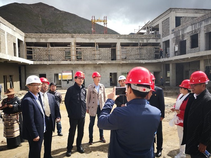 2018年了8月9日,受阜康邀請(qǐng),西藏自治區(qū)政協(xié)副主席、區(qū)工商聯(lián)主席、區(qū)總商會(huì)會(huì)長(zhǎng)阿沛·晉源,拉薩大昭寺管家洛桑,西藏自治區(qū)社會(huì)科學(xué)院原處長(zhǎng)次旺仁青,西藏阜康醫(yī)療股份有限公司黨委書(shū)記、董事長(zhǎng)王斌,西藏阜康醫(yī)療股份有限公司黨委副書(shū)記、副總經(jīng)理陳彬,西藏阜康醫(yī)院名譽(yù)院長(zhǎng)嘎布,阜康生殖醫(yī)學(xué)中心實(shí)驗(yàn)室主任劉鋒,阜康體檢中心主檢師瓊瑪,阿沛·晉源主席秘書(shū)旦增一行早上8點(diǎn)從拉薩出發(fā),一路顛簸馳騁于下午2點(diǎn)50分許抵達(dá)那曲地區(qū)嘉黎縣夏瑪鄉(xiāng)。聽(tīng)說(shuō)晉源主席要來(lái)視察衛(wèi)生院的建設(shè)工作,嘉黎縣縣長(zhǎng)吾金不顧受傷的左腿帶領(lǐng)當(dāng)?shù)馗刹咳罕娫缭绲群蛟谙默斷l(xiāng)衛(wèi)生院建設(shè)現(xiàn)場(chǎng)。