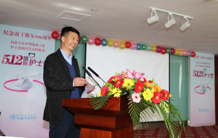 王斌董事長致辭,他代表西藏阜康醫(yī)療股份有限公司全體股東向工作在一線的護理工作者表示深深的謝意,同時感謝一直支持他們的家人和親友,王斌董事長表示他一定會竭盡所能帶領(lǐng)醫(yī)院領(lǐng)導(dǎo)班子為我院護士們創(chuàng)造一個更好的工作環(huán)境和更加滿意的福利待遇。