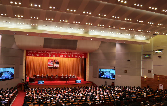 自治區(qū)黨委常委、黨委統(tǒng)戰(zhàn)部部長旦科宣讀《全國工商業(yè)聯(lián)合會關(guān)于西藏自治區(qū)召開第二次非公經(jīng)濟發(fā)展大會的賀信》;自治區(qū)黨委副書記、人大常委會主任洛桑江村宣讀《中共西藏自治區(qū)委員會、西藏自治區(qū)人民政府關(guān)于表彰西藏自治區(qū)非公有制經(jīng)濟先進單位和個人的決定》,自治區(qū)領(lǐng)導(dǎo)吳英杰、洛桑江村、齊扎拉等為全區(qū)第二批優(yōu)秀中國特色社會主義建設(shè)者、2016年全區(qū)五類100強非公有制企業(yè)、全區(qū)扶持非公有制經(jīng)濟發(fā)展先進地(市)和先進縣(區(qū))獲獎代表頒獎。