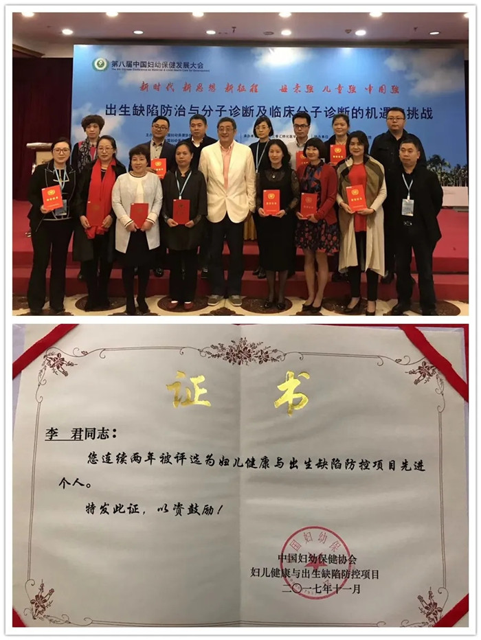 在院期間,李君主動承擔了學術(shù)兼職的重擔。在2014年榮獲"西藏自治區(qū)衛(wèi)生行業(yè)婦女崗位建功先進個人”稱號,在2016年、2017年、2018年連續(xù)三年間被評為"婦兒健康與出生缺陷防控項目先進個人”。