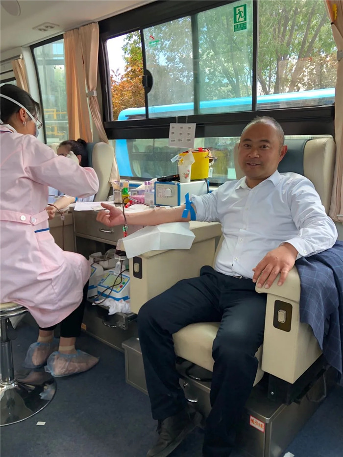 在通過了體檢之后,劉連福院長實現(xiàn)了再次獻血的心愿。他親歷了多次阜康醫(yī)院的獻血活動,但每一次獻血,他的內(nèi)心難以克制住激動。