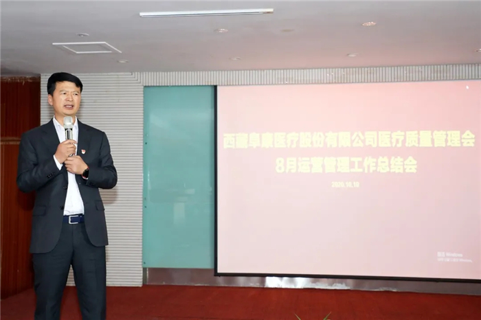 10月10日,西藏阜康醫(yī)療質(zhì)量管理及8月運營管理工作總結(jié)會暨引進高端人才頒獎儀式在阜康醫(yī)院婦產(chǎn)兒童院區(qū)(院區(qū)三)四樓會議室召開。西藏阜康醫(yī)療股份有限公司黨委書記、董事長王斌,西藏阜康醫(yī)院總院長寧曉及醫(yī)院領(lǐng)導(dǎo)、科主任和相關(guān)人員參加了本次會議。會議由行政辦公室主任晉雪莉主持。