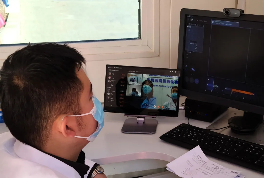 在開機儀式現(xiàn)場,阜康醫(yī)院車載移動CT與四川大學(xué)華西醫(yī)院影像科進行了實時連線,華西醫(yī)院影像科李真林教授與羊丹老師通過5G網(wǎng)絡(luò)進行遠程操控,為數(shù)例體檢患者提供了優(yōu)化掃描參數(shù)、優(yōu)化擺位方式等遠程指導(dǎo),讓優(yōu)質(zhì)的醫(yī)療資源能夠及時惠及西藏群眾。