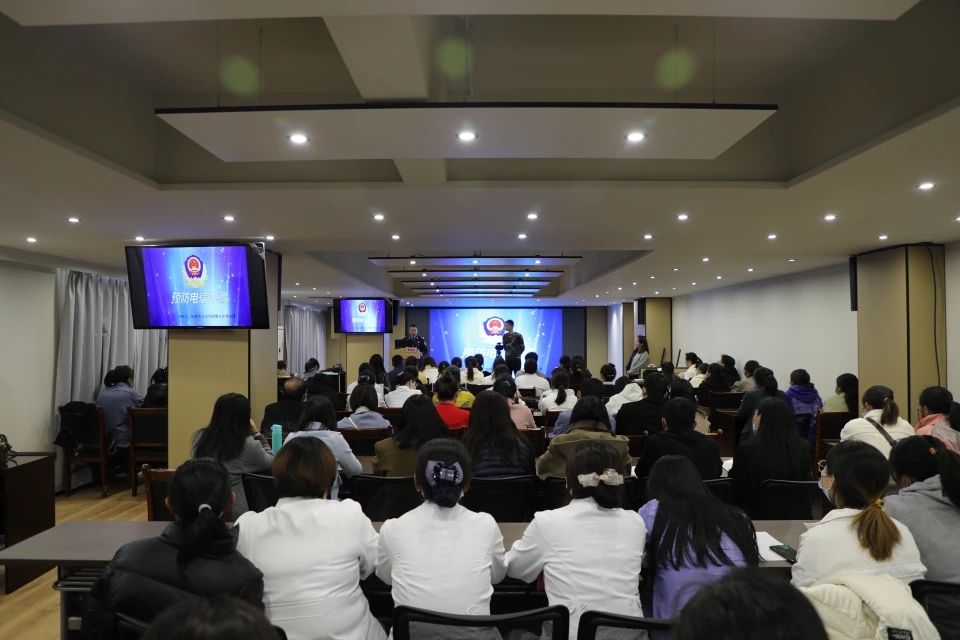 3月3日至4日,為了提高全院職工反詐騙能力,由阜康醫(yī)療黨委辦公室組織,由拉薩市公安局反詐騙中心主講的"預(yù)防電信詐騙”專題講座在西藏阜康醫(yī)院婦產(chǎn)兒童院區(qū)(院區(qū)三)行政辦公區(qū)會議室舉行,拉薩市公安局反詐騙中心李遠(yuǎn)欣警官主講授課,我院全體醫(yī)生、技師分兩批次參加了本次培訓(xùn)(全體行政后勤、護(hù)理人員已在之前參加了培訓(xùn)),培訓(xùn)會由黨委辦公室喬倩主持。