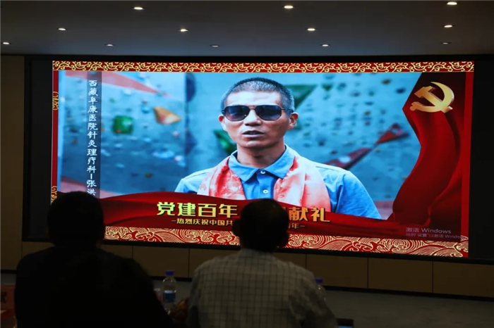 會(huì)議在雄壯的國歌聲中隆重召開。亞洲第一位登頂珠峰的盲人——阜康醫(yī)院針灸理療科張洪醫(yī)生從國外發(fā)來祝福視頻;會(huì)議播放了中國共產(chǎn)黨百年述職專題片,公司全體黨員一起學(xué)習(xí)了百年黨史。