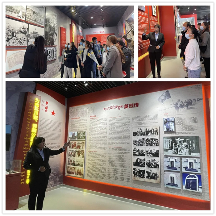 在講解員的帶領(lǐng)下,大家參觀了烈士紀(jì)念館,館內(nèi)主要展陳了見(jiàn)證西藏和平解放、修筑川藏青藏公路、平叛改革、中印自衛(wèi)反擊戰(zhàn)、平息拉薩騷亂及在西藏社會(huì)主義革命建設(shè)中英勇?tīng)奚母锩沂渴妨稀⒘沂窟z物等,更讓我們了解了今天幸福生活來(lái)之不易。