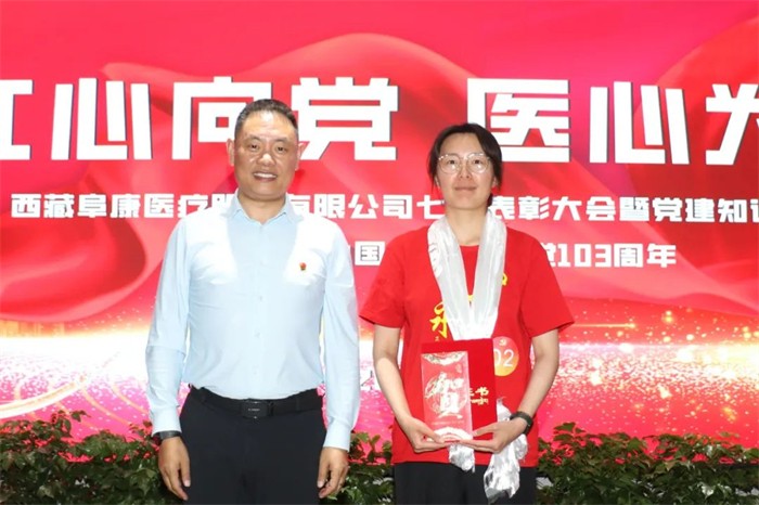 西藏阜康醫(yī)療股份有限公司黨委副書記、紀(jì)委書記、副總經(jīng)理陳彬代表王斌書記、公司黨委以及院領(lǐng)導(dǎo)班子,向全體黨員、預(yù)備黨員以及入黨積極分子致以了誠摯的節(jié)日祝福,并向受到表彰的先進(jìn)集體和個人表示了熱烈的祝賀。他總結(jié)了過去一年在公司黨委正確領(lǐng)導(dǎo)下取得的優(yōu)異成績,同時,提出了三點(diǎn)希望和要求: