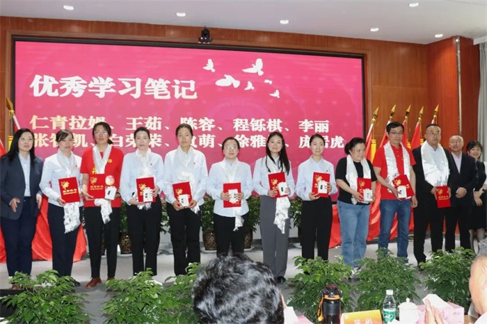 黨委委員李麗宣讀表彰決定:經(jīng)各支部推選,公司黨委會審議決定表彰2個先進(jìn)基層黨組織、4名優(yōu)秀黨務(wù)工作者、8名優(yōu)秀黨員、8名志愿服務(wù)之星,10本優(yōu)秀筆記。