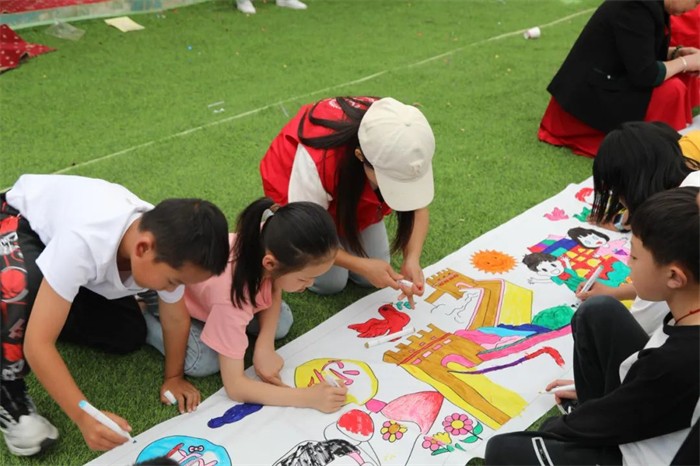 在祖國(guó)母親即將迎來75歲生日之際,我們以一幅長(zhǎng)達(dá)十米的壯麗涂鴉,向偉大的祖國(guó)母親致以最深的敬意與最熱烈的祝福。天安門城樓、五星紅旗、天壇公園……我們用手中的畫筆,將對(duì)祖國(guó)的熱愛與祝福融入每一筆、每一劃之中。