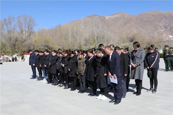 儀式結(jié)束以后,全體黨員整齊肅穆地走過紀(jì)念碑,懷著對革命先烈的崇敬之情瞻仰了烈士陵墓,同時(shí)聽取引導(dǎo)人員關(guān)于革命烈士的事跡介紹。在烈士英名墻下,大家仔細(xì)瀏覽烈士的名字;在領(lǐng)導(dǎo)干部的楷模孔繁森同志的墓碑前,大家深深鞠躬表達(dá)對革命先烈的崇敬與追思;面對一排排長眠的革命烈士,大家深切感受黨的事業(yè)所經(jīng)歷的艱辛與付出的巨大犧牲,深深思考作為一名新時(shí)代的中國共產(chǎn)黨員應(yīng)該如何肩負(fù)起歷史賦予的使命,在黨中央和區(qū)黨委的堅(jiān)強(qiáng)領(lǐng)導(dǎo)下,為西藏的穩(wěn)定發(fā)展、為中華民族的偉大復(fù)興貢獻(xiàn)自己的力量,堅(jiān)決做一名無愧于黨和人民、無愧于時(shí)代的合格共產(chǎn)黨員。